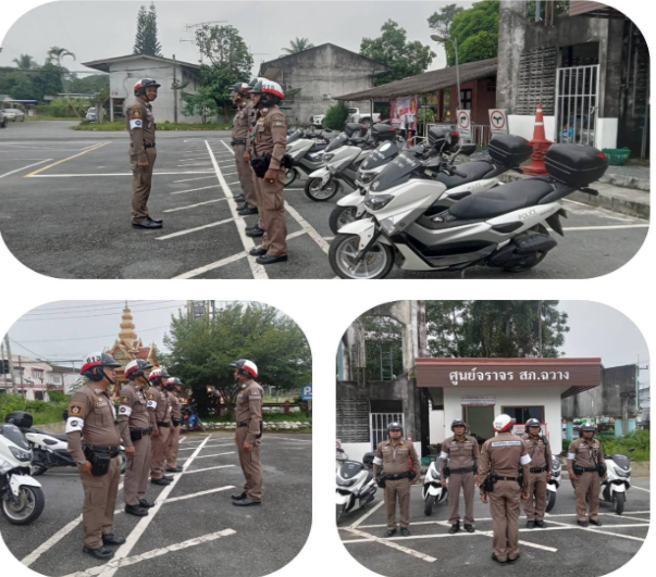 ร.ต.อ.พิชา วงศ์คำจันทร์ รอง สว.จร.สภ.ฉวาง ร้อยเวร ๖๐ ปล่อยแถวสายตรวจจราจร ตรวจทรงผม เครื่องแต่งกาย อุปกรณ์ประจำตัว พร้อมใช้ การใช้กิริยาวาจาที่สุภาพ ไพเราะ การวางตัวขณะปฎิบัติหน้าที่ให้เหมาะสม ปล่อยแถวออก ว.4 อำนวยความสะดวกด้านการจราจร และการตั้งจุดตรวจ จุดสกัดตามมาตรการ ๑๐ ข้อหาหลัก (๑๐ รสขม) การป้องกันการแข่งรถในทาง และการป้องกันเหตุอาชญากรรมต่าง ๆ ก่อนออกปฏิบัติหน้าที่